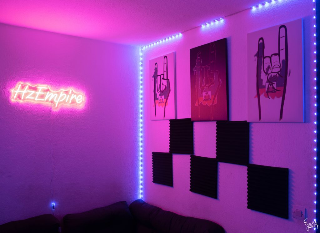 Le studio d’enregistrement HZ Empire dispose d’une cabine de prise de voix entièrement insonorisée. Une fois sur place, vous aurez le choix entre plusieurs micros Neumann pour personnaliser votre session. Vous avez également la possibilité de changer l’éclairage de la pièce pour l’adapter à votre énergie du moment.